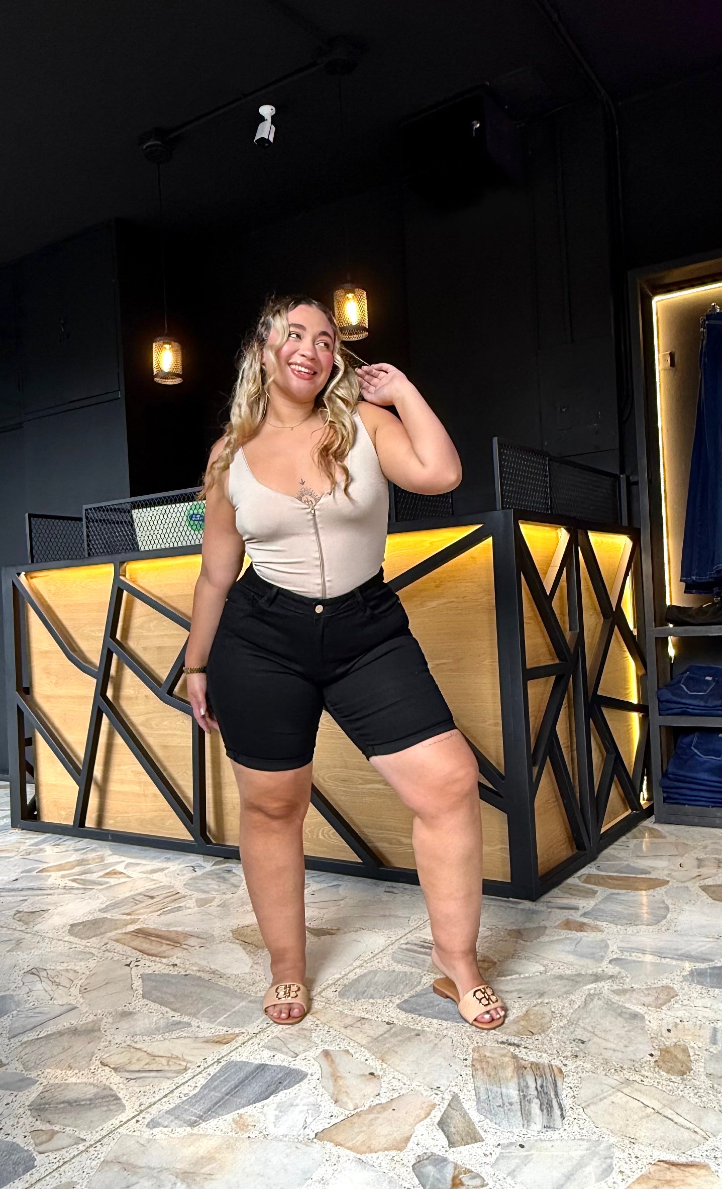 Short curvy en tela denim full stretch, tiene buen stretch tambien en las piernas, es tiro alto y horma divino con realce !