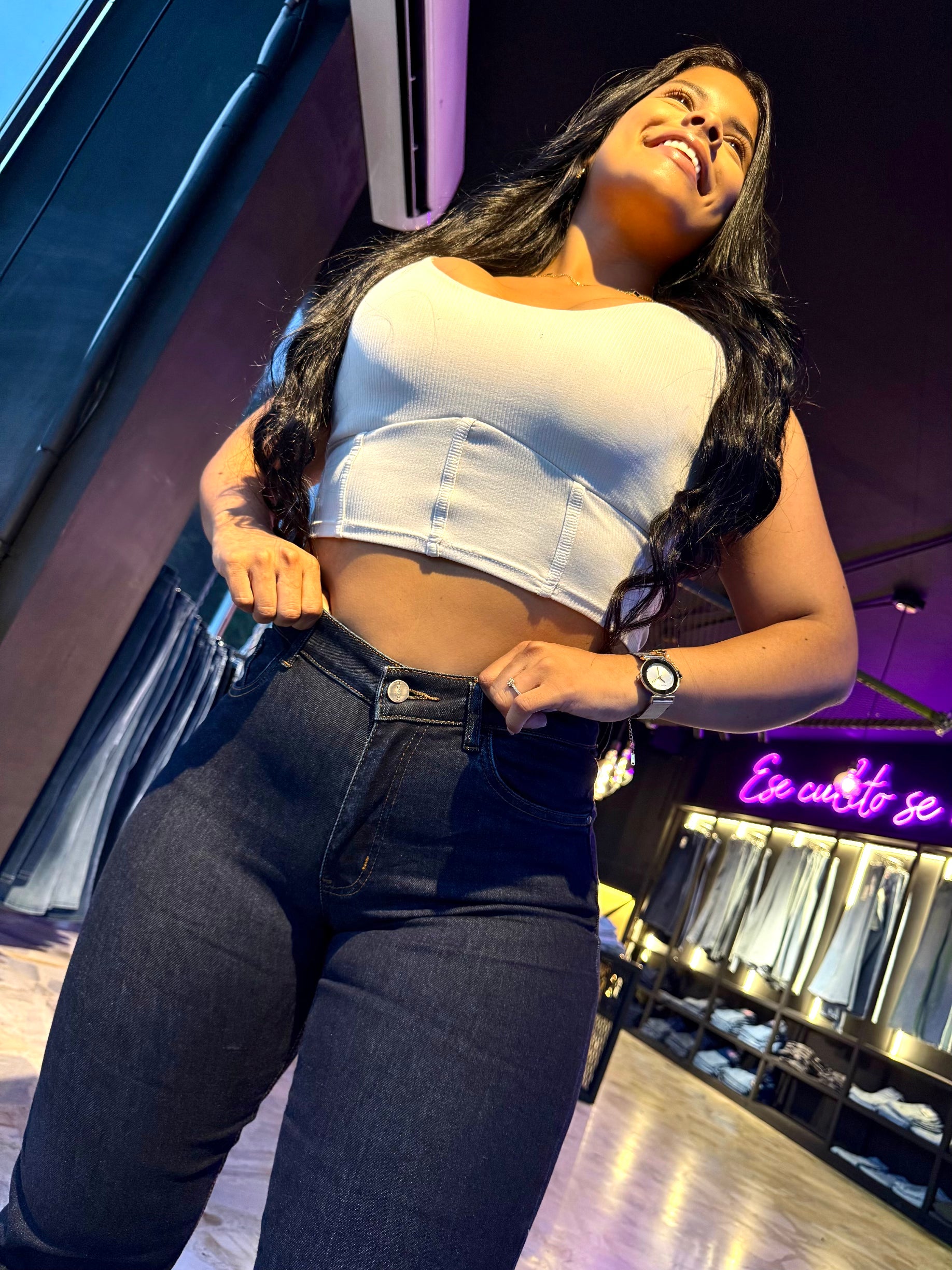REF: 38935 ESTILO RECTO CLÁSICO EN TELA DENIM STRETCH AZUL OSCURO