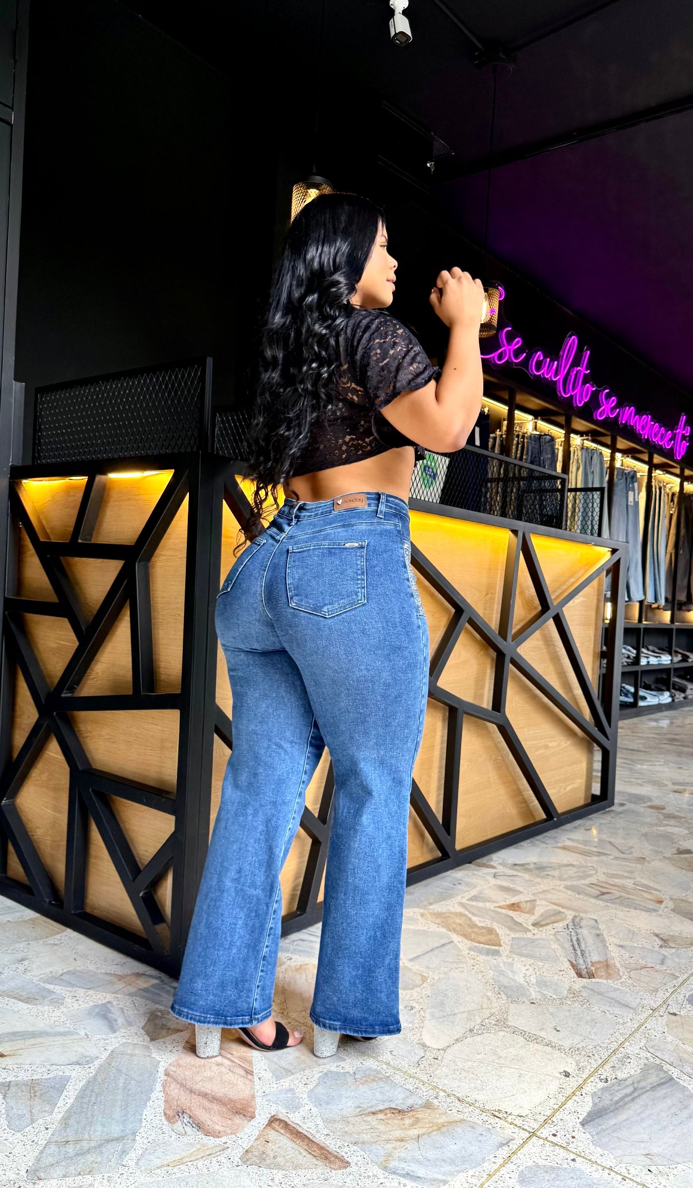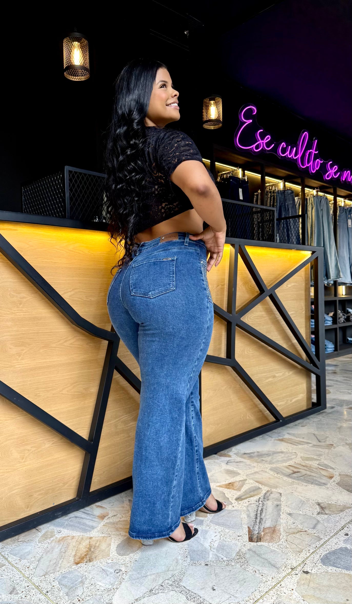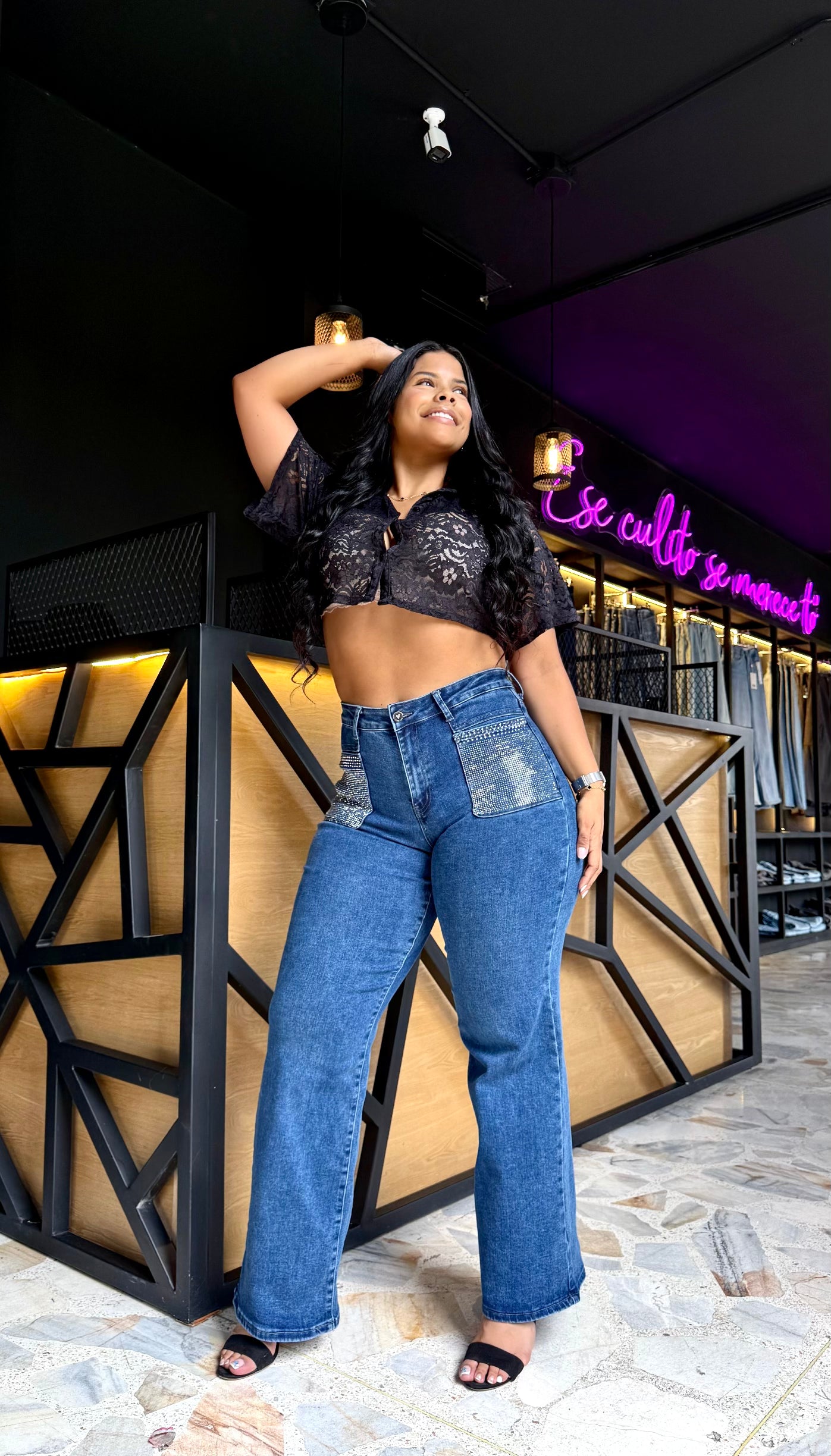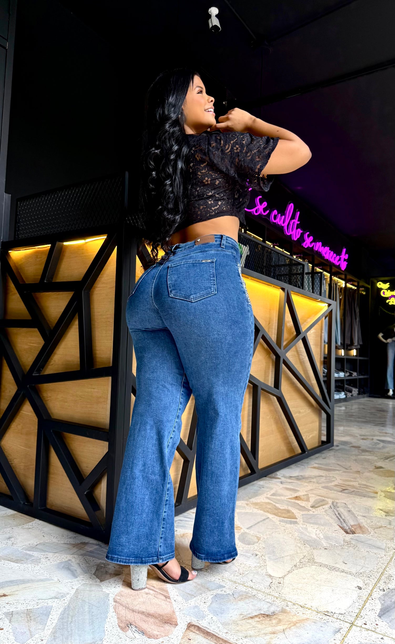 Espectacular estilo bota recta con piedras brillantes en bolsillos delanteros, viene en tela denim gruesa, stretch, es muy cómodo y horma espectacular!